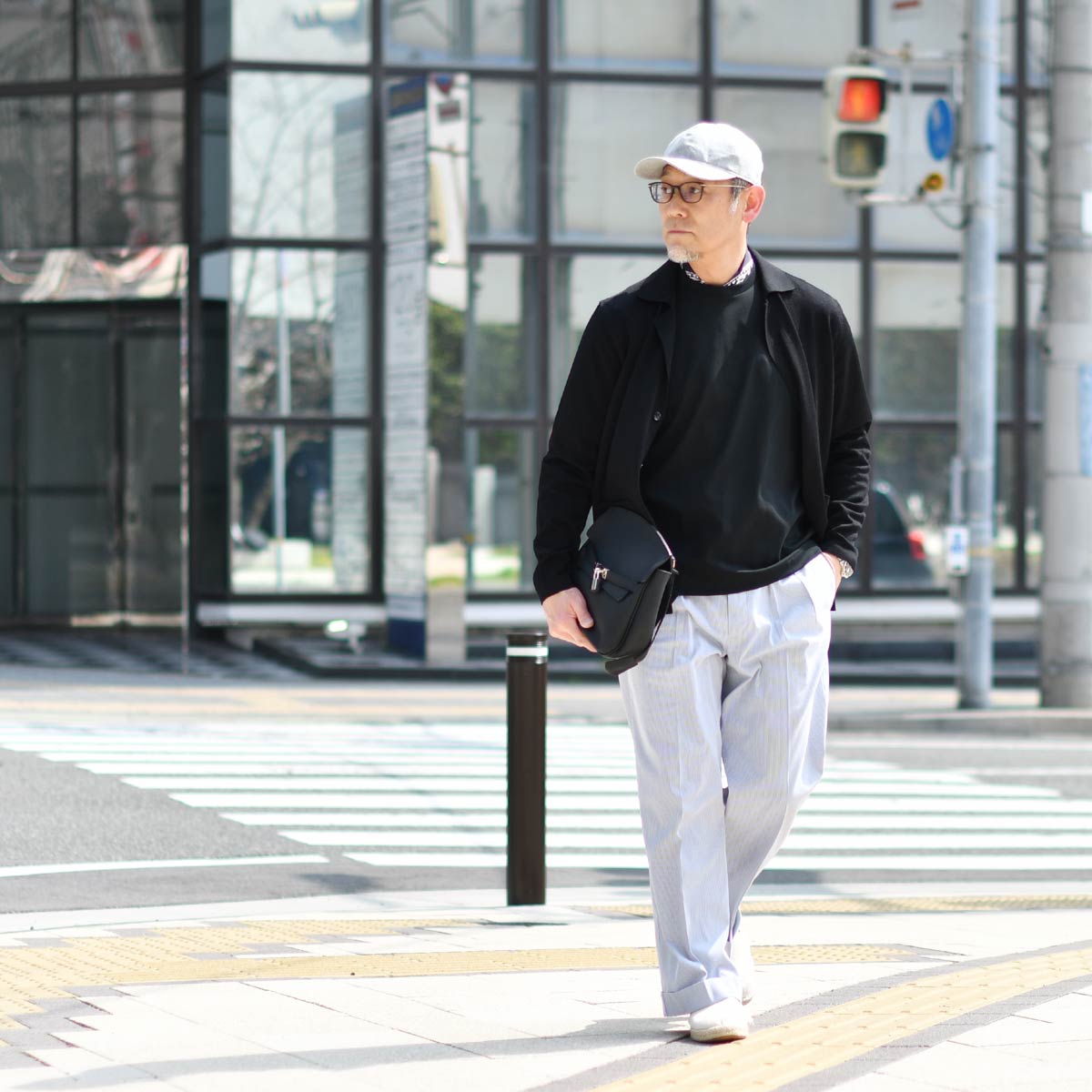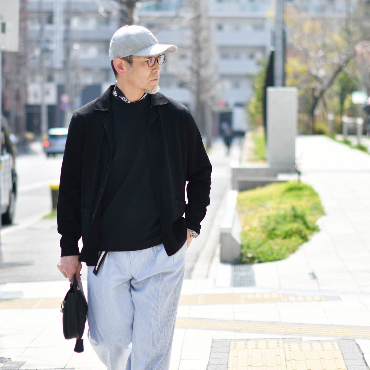 ジャケットっぽく着こなせるカーディガン。