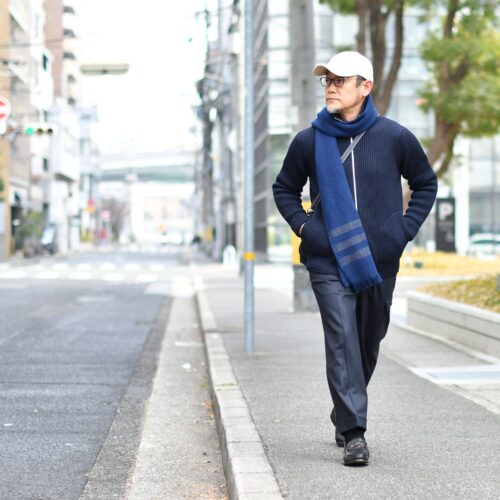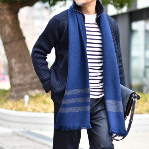 仕上げの襟元には、カシミヤよりも暖かいと評されるヤク100%Norlhaのストールを