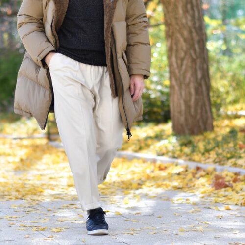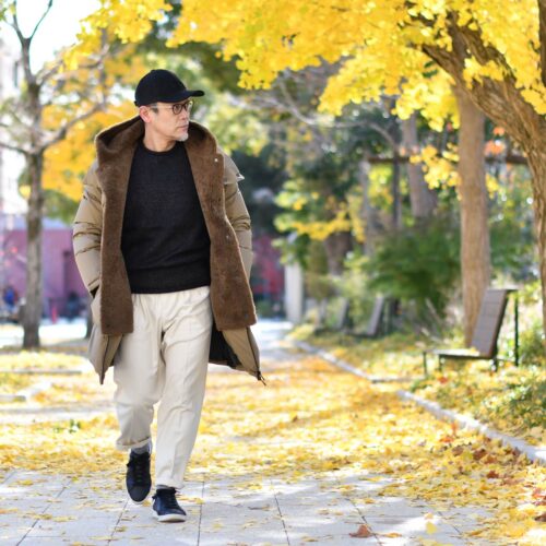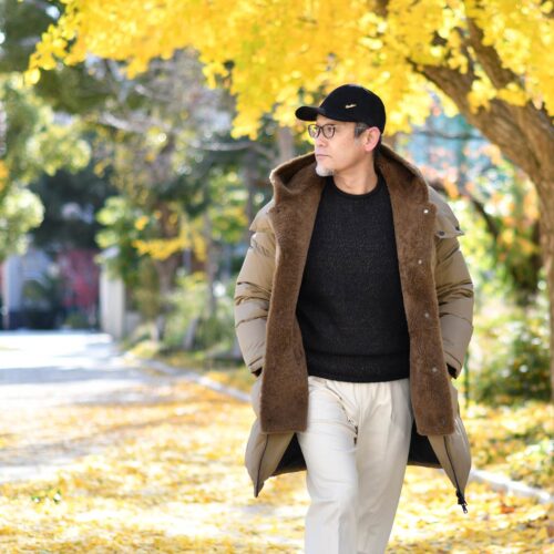 スポーティーなダウンアウターをラグジュアリーに昇華する重要なディテール。