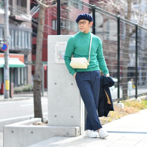 ウール素材のニットの暖かさと、春を意識したスタイリングへとシフトしていただけます。