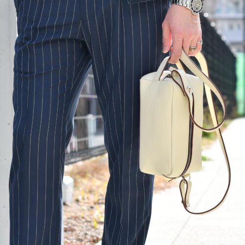 アクセントとしてバッグやシューズにホワイトをコーディネートすることも