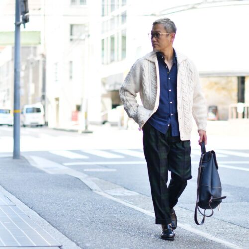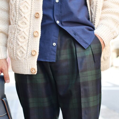 Ginannettoのシャツに、BERWICHのブラックウォッチを使用した