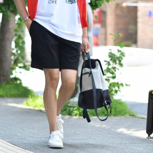 giabsarchivio【ジャブスアルキヴィオ】の新作ショーツを合わせてスポーティルックに。