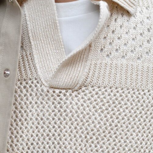スキッパーニットを合わせてエスニックな雰囲気に。