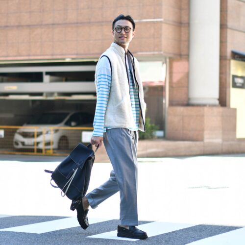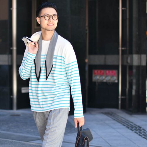 本日の様にボーダーカットソーなどで柄を差し込むのが楽しいと思います。