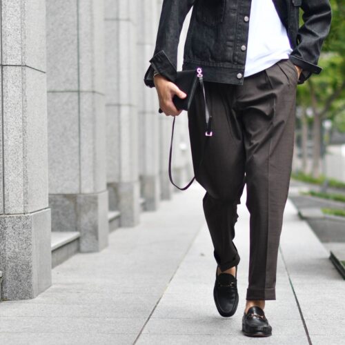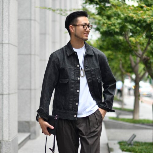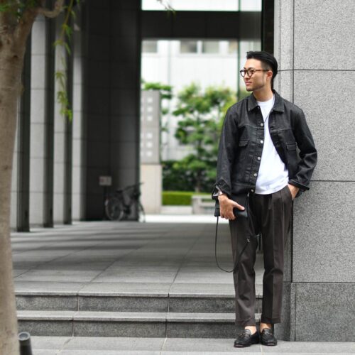 今回のコーディネートは秋口を意識して半袖ニットの上にデニムジャケットを羽織っております。