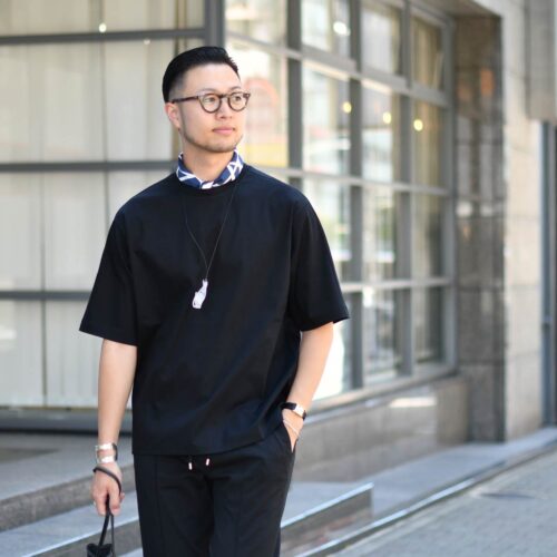 オールブラックでキリリと爽やかに。