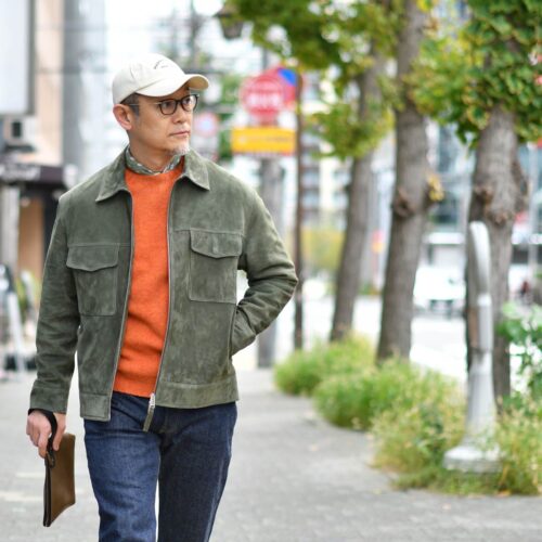 ARMA【アルマ】ジップアップブルゾン KALE LIZARD ゴートスエード グリーン