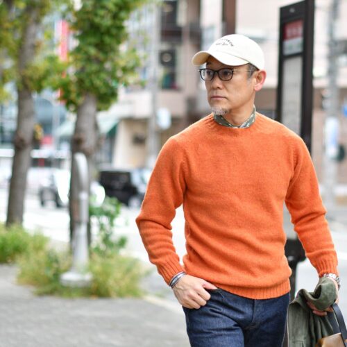 シェットランドウール特有の圧倒的な発色の良さは、コーディネートが一気に華やぎます。