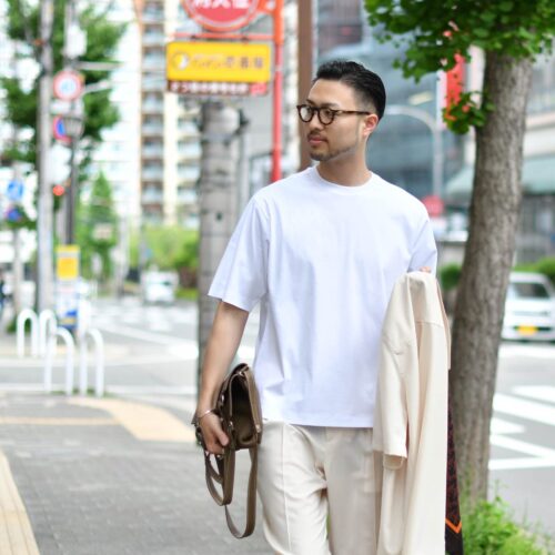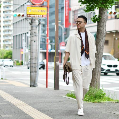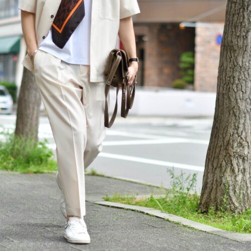 足元は軽快にHELMS PARIS【エルムパリ】のスニーカーが丁度良いでしょう。