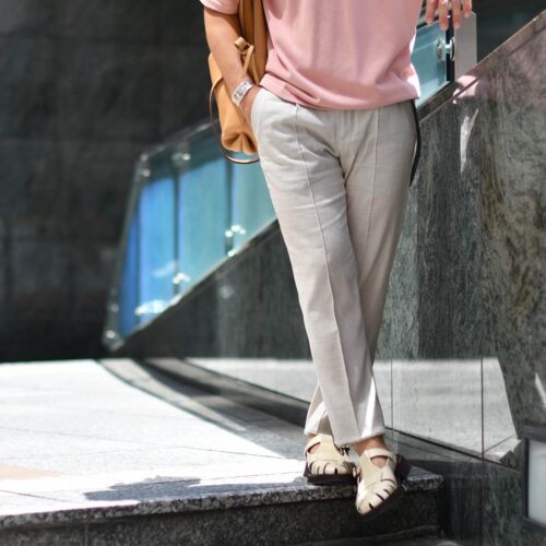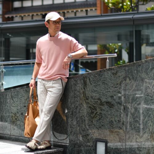 こんな感じのニットTシャツを着て、giabsarchivio【ジャブスアルキヴィオ】のリネンパンツに