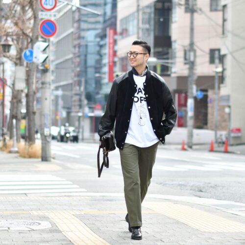 CINQUANTA【チンクアンタ】の別注スタジャンはオールレザー使用。