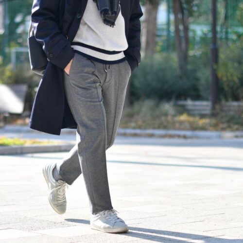 スウェットの見た目がスポーティですが、ニットで仕立てることによって