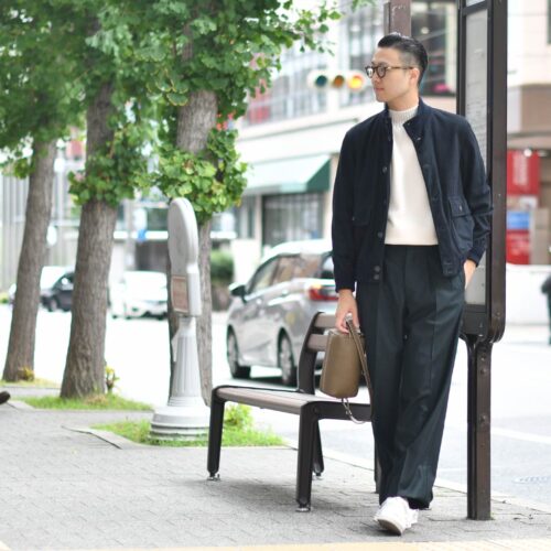 バルスターブルゾンにモードなワイドパンツ合わせが