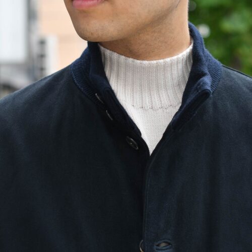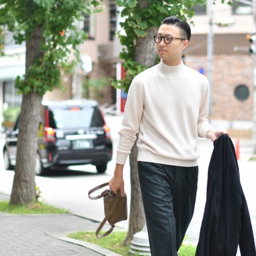 インナーにはミドルゲージのモックネックニット。