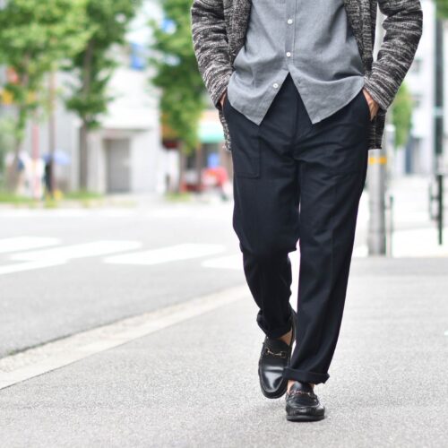 カシミヤウールのベイカーパンツで