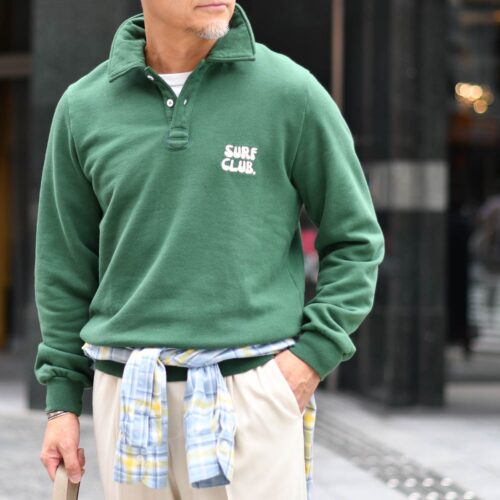 ご紹介のスウェットは、襟付きのPOLOカラーデザインがポイントで、