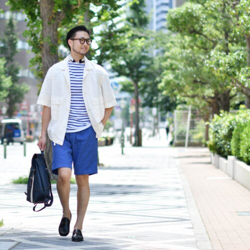 半袖アウターを羽織ってコーディネートを味付けしております。