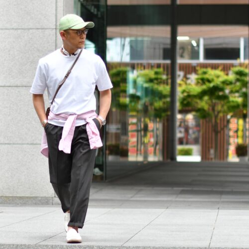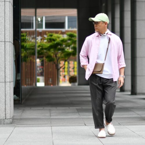 色の綺麗なシャツであることがスタイリングを一層楽しくしてくれます。