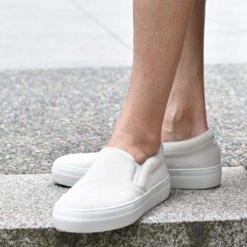 シューズはホワイトスニーカーで軽やかさを強調。
