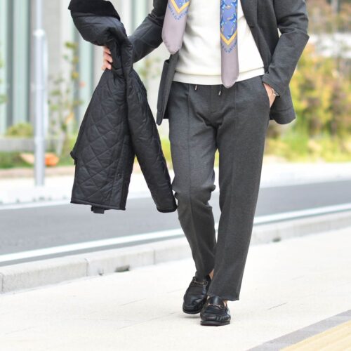 一見スラックスの様なフィッティングがジャケットとも好相性ですね♪