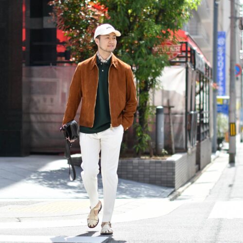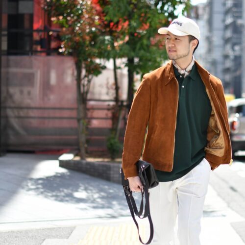 ブラウンのスエードアウターに