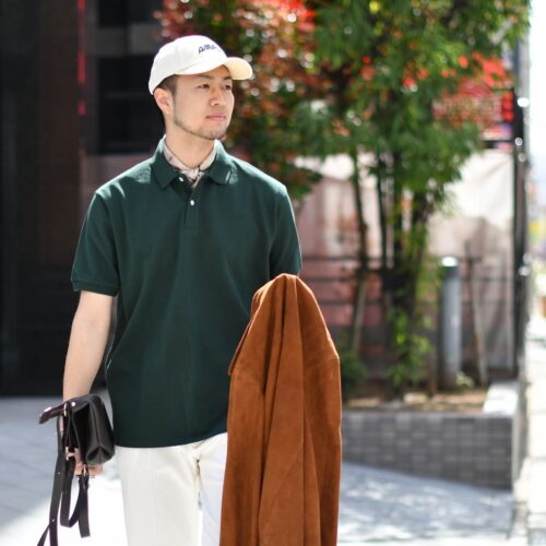 ポロシャツ、フィッシャーマンサンダルと