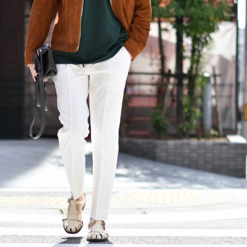 本日ご紹介致しますのは新入荷のホワイトパンツを使用したコーディネート。