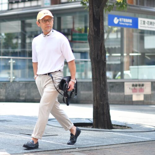 パンツは少し明るいベージュ系を選び、