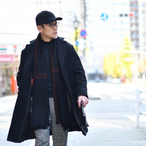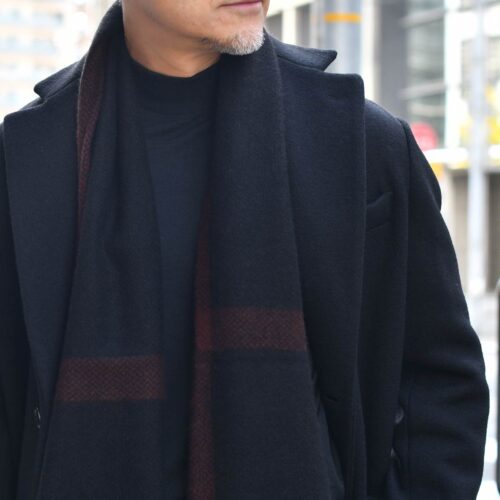 本日はコートスタイルを華やかに演出する大判ストールを着用!
