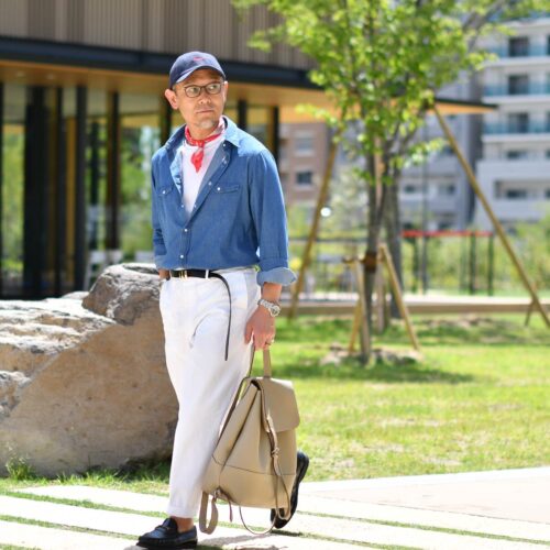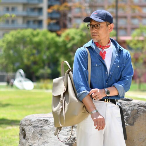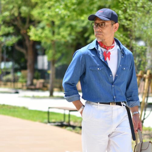 しなやかで柔らかいダンガリーシャツは、アメリカンなスパイスで遊びつつも