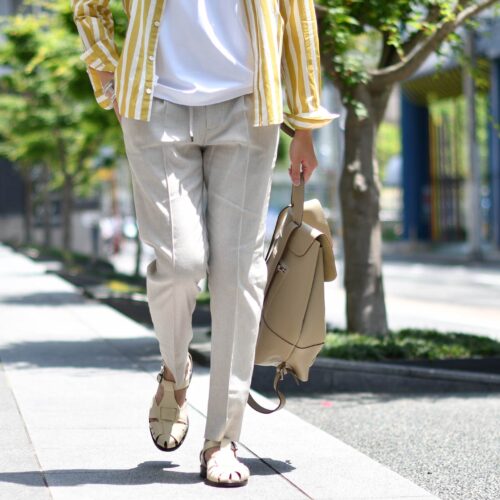 パンツ、ベルト、バッグ共にベージュからーをチョイス!
