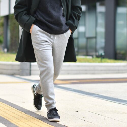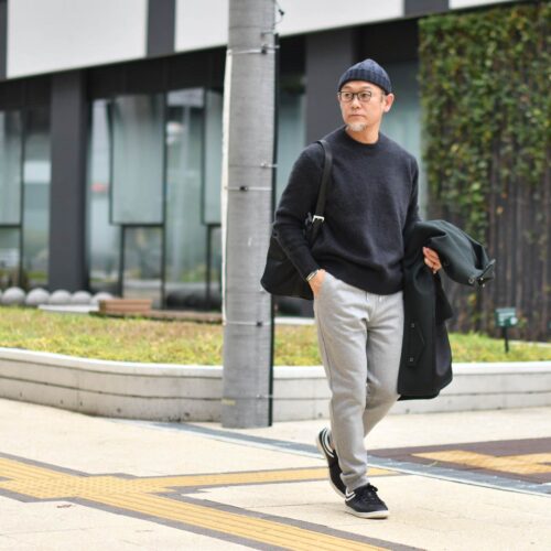 ニットキャップに、スウェットパンツに、スニーカーといった