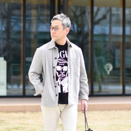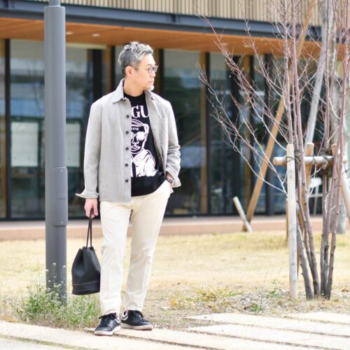 スッキリとモノトーンコーディネートですが、EGYBOY【エギーボーイ】のカットソーで