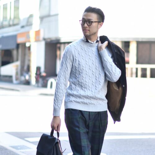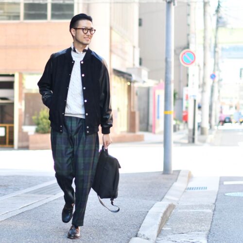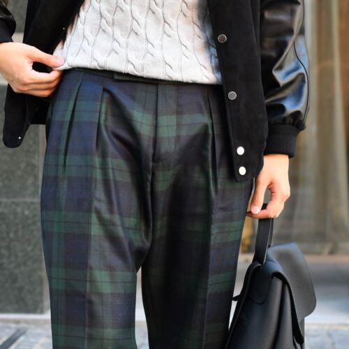 タータンチェック柄がさり気なくコーディネートにアクセントを加えてくれます。