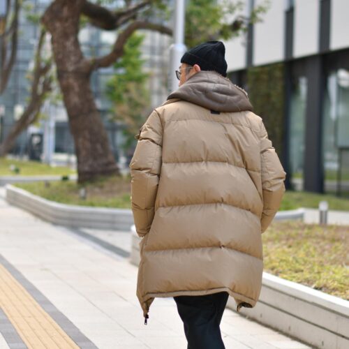 Aラインのシルエットと贅沢なダウンの分量を感じさせるボリュームのあるデザインに、