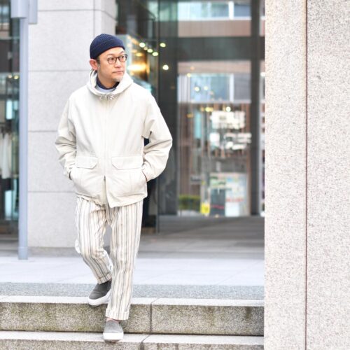 いわゆるマリンパーカの様な軽やかで空気感のある表情が春夏に最適な一着は、
