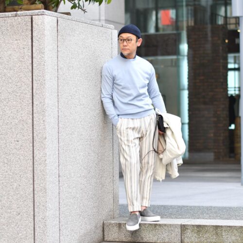 特に今春には、より一層軽快に見せることのできるホワイトアウターを推しておりますので