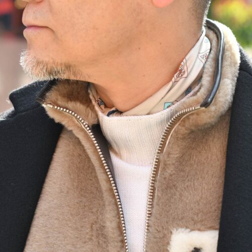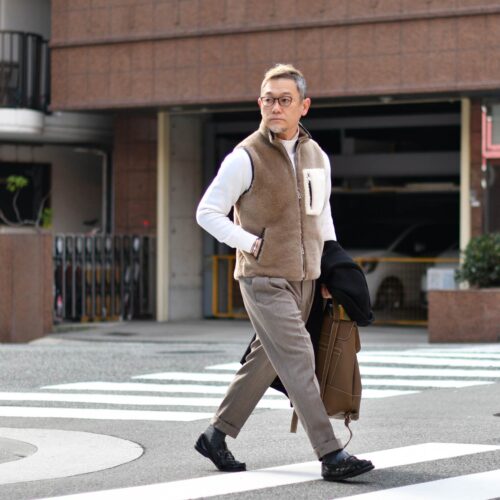 ムートンベストをレイヤードすると、見た目にも楽しく保温性としても安心できる