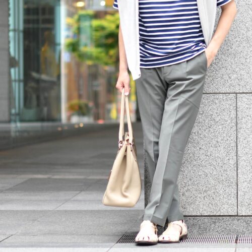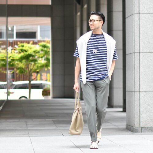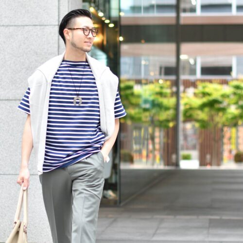 トップスにボーダーアイテムを使用し