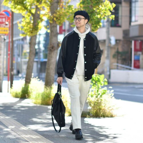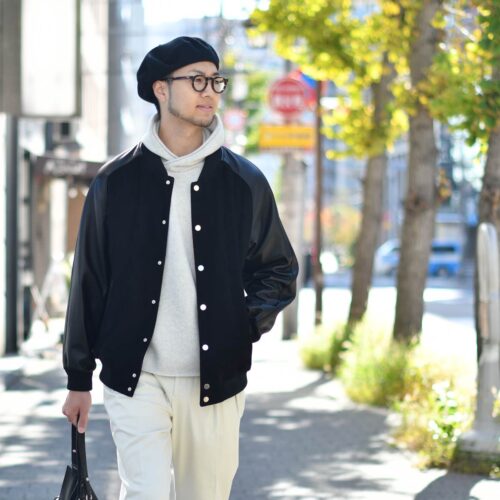 本日ご紹介致しますのはモノトーンのスタジャンコーデ。
