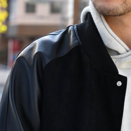 CINQUANTA【チンクアンタ】スタジャン アワードブルゾン Q528 2011 1060 999 NERO ゴートスエード ナッパレザー ブラック