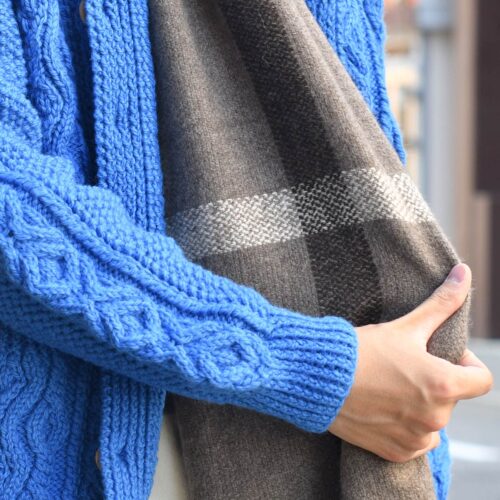 最後にヤクの毛を使用した極暖ストール垂らしてコーディネートは完成です。