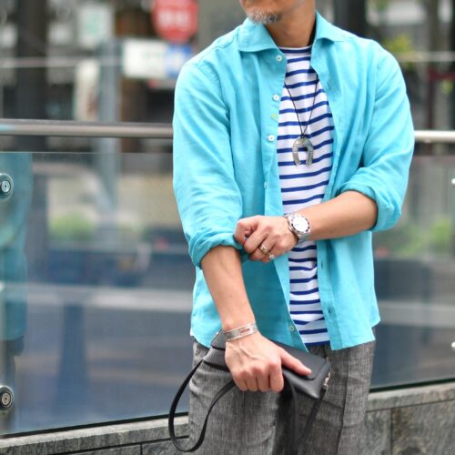 カラーシャツを着た経験のない方でも、このターコイズであれば案外抵抗なくご利用頂けますよ♪