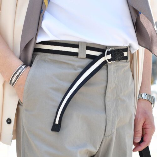 ALBERTO LUTI【アルベルト ルティ】Wリングリボンベルト BLACK WHITE クロコスタンプレザー コットン ブラックホワイト