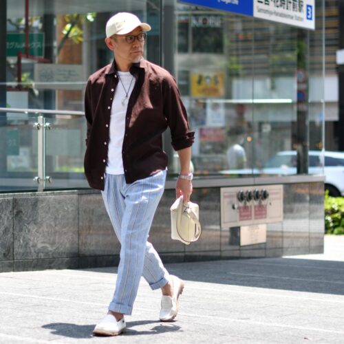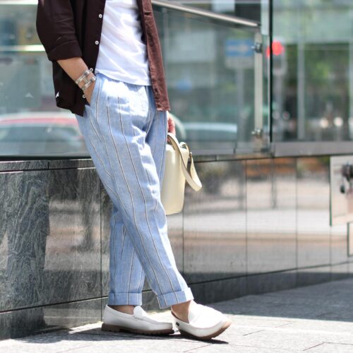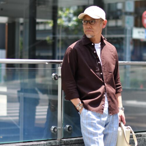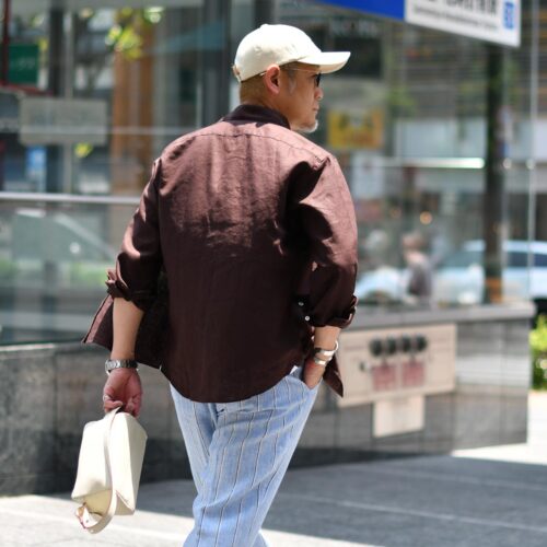 リネンシャツは袖をロールアップして真夏の大人の為のアウターとして