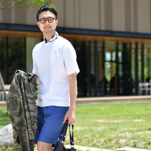 ブルーのショートパンツで夏らしさを色濃く表現しております。