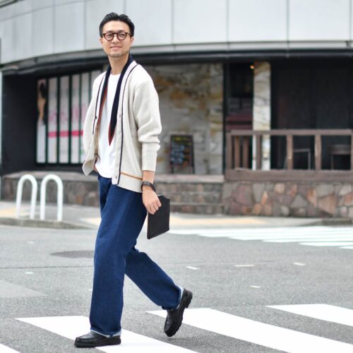 ボトムスにはCellar Door【セラードアー】のワイドデニムをチョイス。