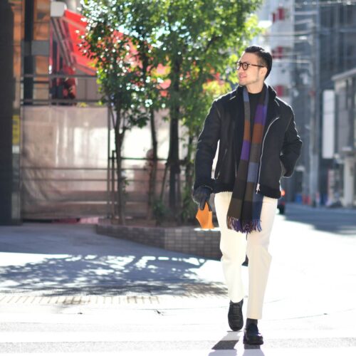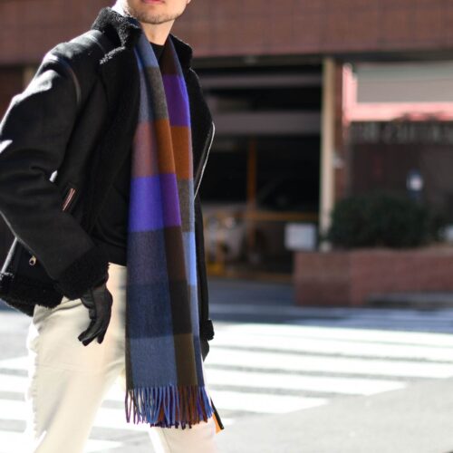 大判ストールなのでぐるっと巻かずに首に垂らすと男性らしさが増しますね☆