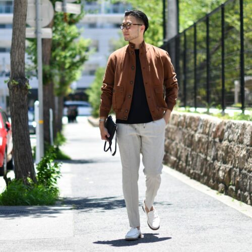本日はベージュ、ブラウン系に黒のTシャツを差し込み